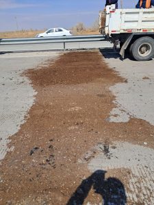 Harakat xavfsizligini ta’minlash maqsadida ushbu hududda vaqtinchalik asfalt qoplamasini yotqizish ishlari amalga oshirildi. Shu bilan birga, mazkur yo‘l qismi beton qoplamadan iborat bo‘lganligi sababli, hozirda beton qoplamani tiklash bo‘yicha zarur texnik ishlar olib borilayotganini ma’lum qilamiz.