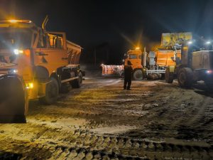 Respublikamız aymaǵında túni boyı jawǵan qar sebepli avtomobil jollarında muzǵalaqlar payda bolıwına hám avtotransportlardıń qatnawına unamsız tásir kórsetiwi múmkin. Aydawshılarǵa qolaylıq jaratıw, hár qıylı kewilsiz hádiyselerdiń aldın alıw maqsetinde Qaraqalpaqstan Respublikası Avtomobil jolları bas basqarması sistemasındaǵı barlıq rayonlıq jol xojalıq mákemeleriniń jumısshı-xızmetkerleri tárepinen ulıwma paydalanıwdaǵı avtomobil jollarında qardan tazalaw jumısları alıp barılmaqta. Házirgi waqıtta bul jumıslarǵa barlıq arnawlı texnikalar tartılıp, avtomobil jollarına qum-duz aralaspası sebilmekte.